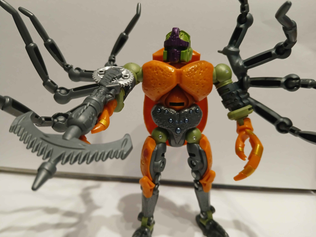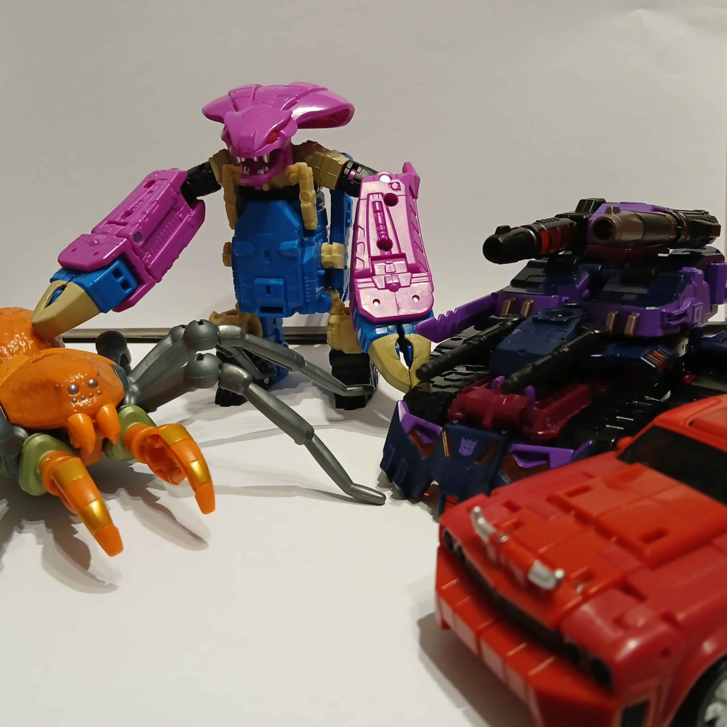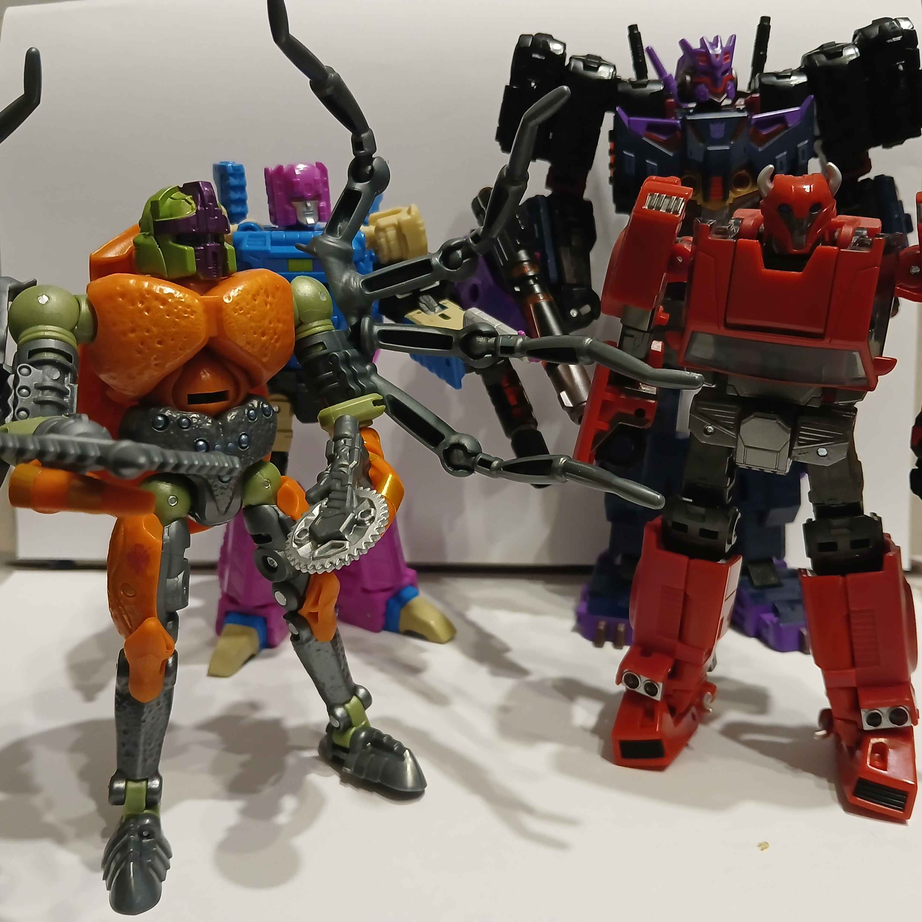 First up, let’s talk about Tarantulas! His colours are based off of the prototype for his original Beast Wars figure, his head is based on his original toy’s non-mutant head, and his head’s colours are based on… *checks tfwiki*… his Beast Wars 10th Anniversary figure? I don’t really see it. He feels nice to hold and I like his look (in person his head feels kinda too big? Sometimes? But that’s the only visual issue I have)