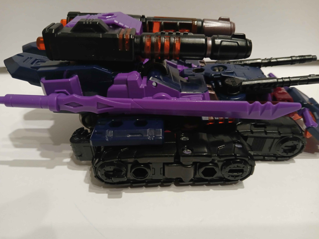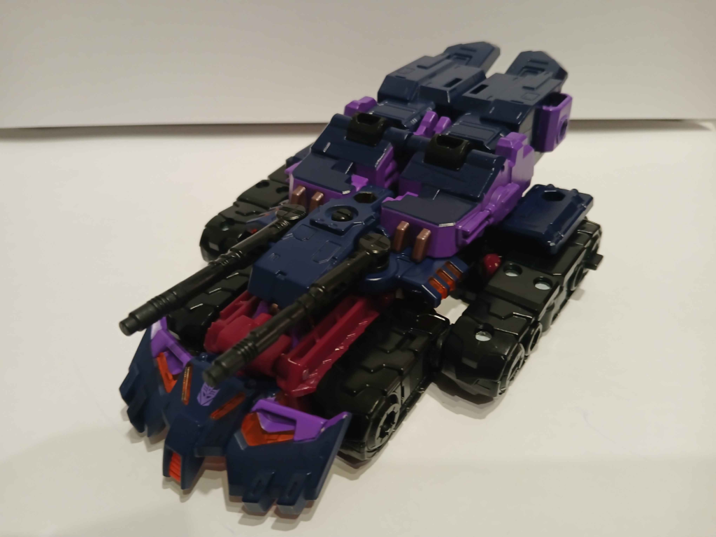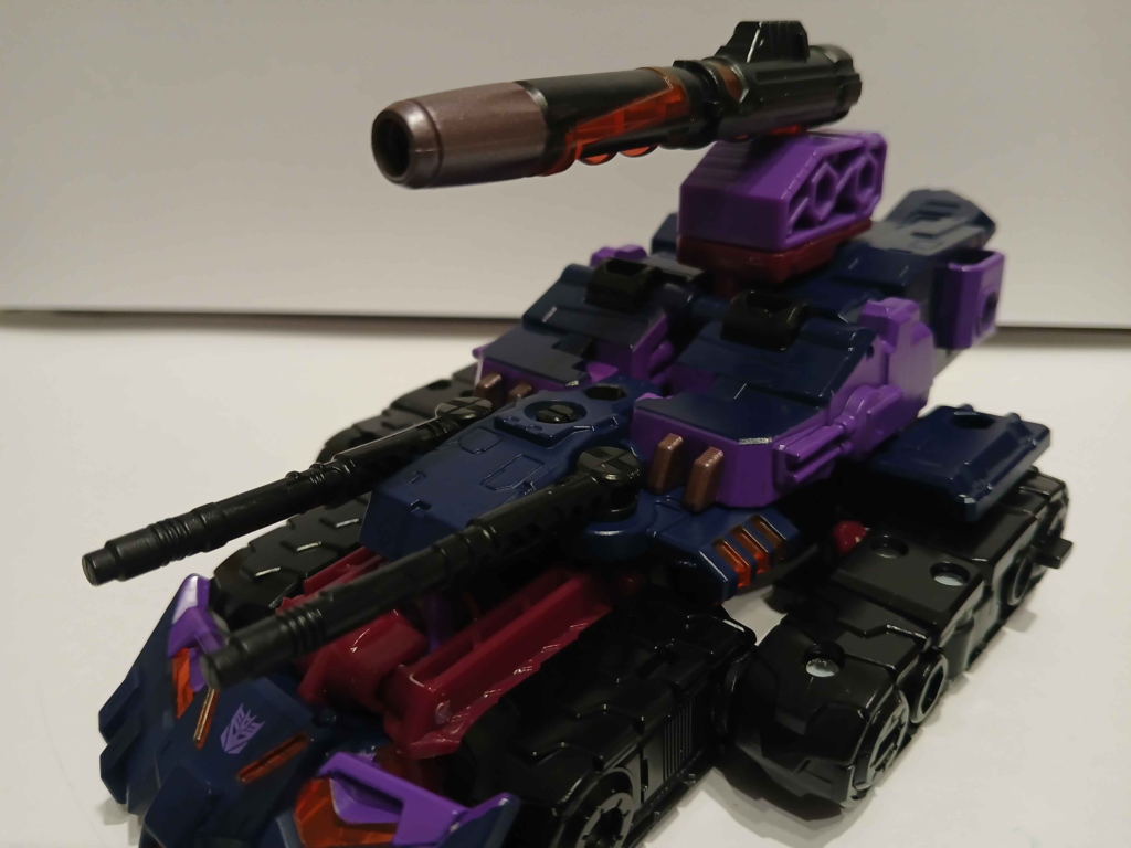 Next up, TARN!!! He’s so fucking cool looking, man. I especially like his legs for some reason. He’s quite posable, nice and hefty, and I like the Cyberverse colours. As you can see in the below image, idk if this is just my copy, but his right arm’s transformation joint that, like, bends inwards just below the treads there, can’t support the weight of his tank turret attached to his arm. But that’s a minor problem.