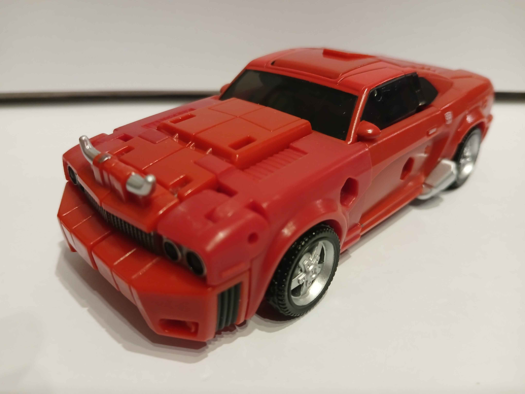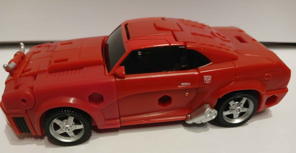 Now if you were thinking “Hey, where’s that typical reeeraaaw positivity?” The answer is: right here. ho. ly. FUCK this car looks great. Yeah, transformation is kinda iffy trying to fold in those little wing things on his back into place and one of his headlight pieces sometimes falls off in the process but it’s just! So! COOL!!! It looks so powerful and solid and. This is a muscle car, right? It fucking looks like it. It looks like the word “muscle” was turned into a car